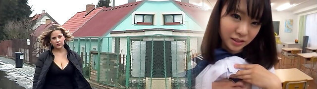 Teenager sweetheart China Mimura strips and has a big cock stuffed