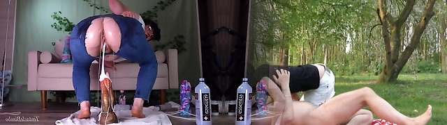 Curvy Nerdy PAWG In Torn Jeans Cowers On Gigantic Dildos, Pumping Her Slit With Big Creampies