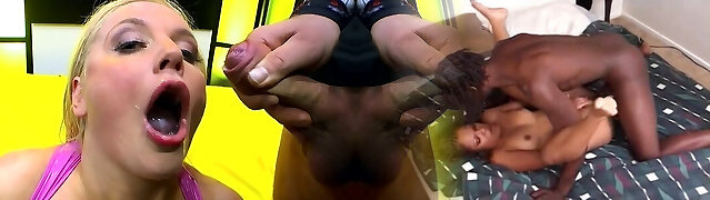 Big Black Cock gangbang and bukkake for buxom blonde whore