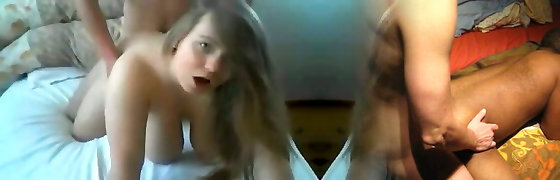 Chubby Blonde Woman With Big Globes Is Yelling While Having A Casual Threesome With Two Guys