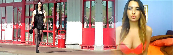 DeeDeeSlut69 - Out in her Ebony Lingerie and purple Shirt in Public