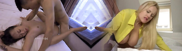 Babe with porcelain skin Lena Anderson is fucked by tanned boyfriend