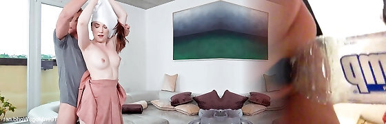 Redhead college girl lets her friend knead her super-cute natural tits