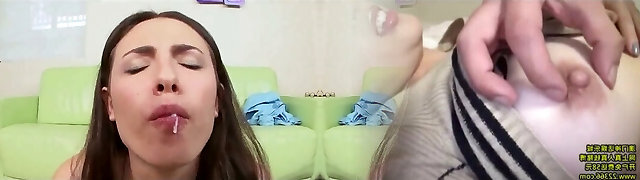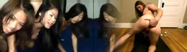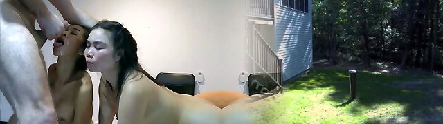 2 Asian sluts share facial after blowjob and hard pounding