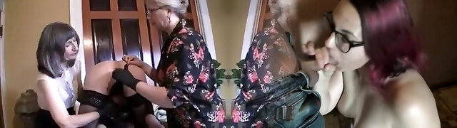 Female Dominance fetish mistresses fuck bdsm loser with strapon