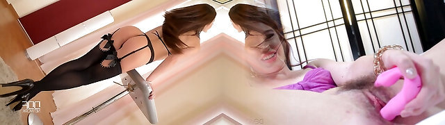 Brunette glamour ladies in stockings masturbate
