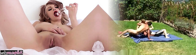 Glamour babe with big boobs masturbates in undergarments
