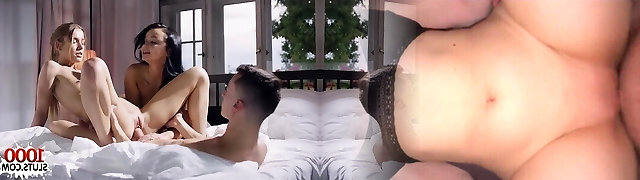 Glamour teen threesome and money-shot