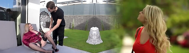 Trio glamorous girly-girl babes are having a session in the backyard