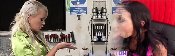 Carmen Blue and Lexxis Brown enjoy an erected love device