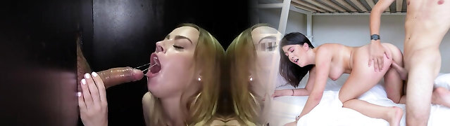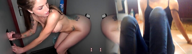 Amazing whorable Barbie Sins sucks strong glory hole BBC well