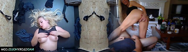 Two whorish chicks enjoys visiting glory hole room