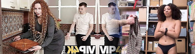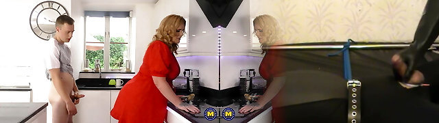 SHAME4K. Curly redhead with monstrous tits sucks neighbors trunk in the kitchen