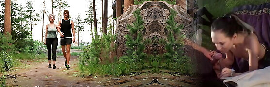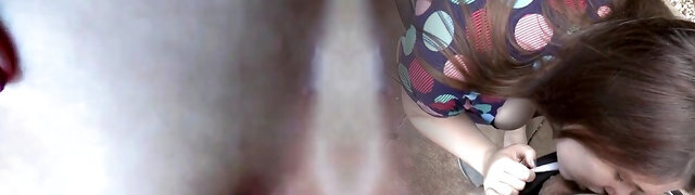 BBW mature visits a duo and sucks dick and squashes her breasts