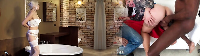 Mature granny inhaling young black dick