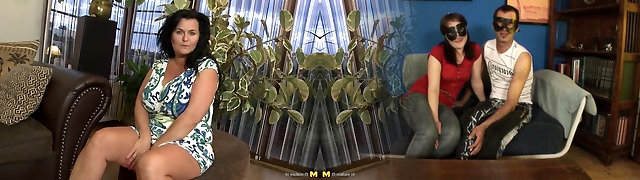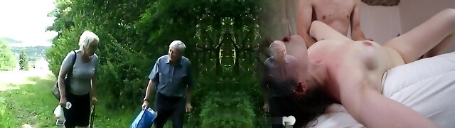 Fucking the granny in the couple's sofa
