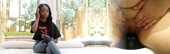 Gorgeous black ladyboy gets horny when