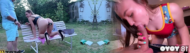 Gorgeous Cougar With Long Hair Getting Facial Cumshot Outdoor