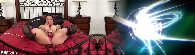 Stunning secretary Sasha Sparrow in lingerie pleasuring her cooter