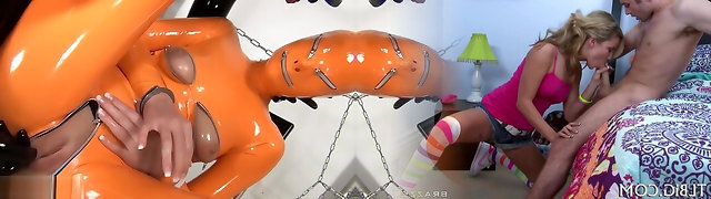 Julie Skyhigh in latex plays with guy in hotel