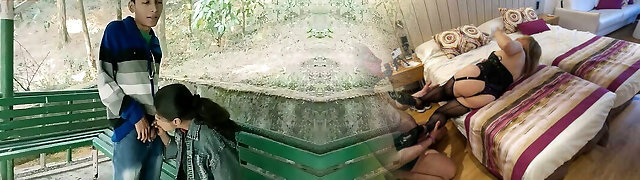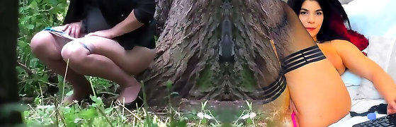 Pretty slut mature jacks sucks a voyeur and fucking in forest