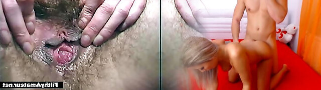 buxomy little girl does a open honeypot squirt and exposes spread asshole
