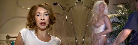 Pussy playing blonde fetish lesbians piss on each other