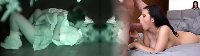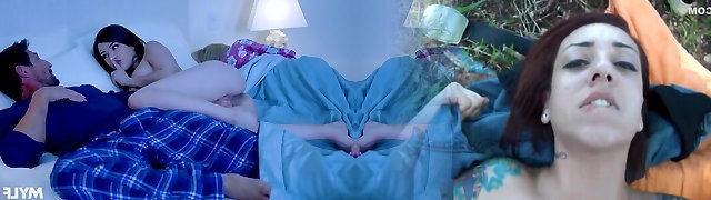 Cheated wife sleeps tight as her husband fucks super-fucking-hot brunette hardcore