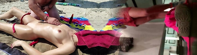 Beach-side Massage of a naked MILF body