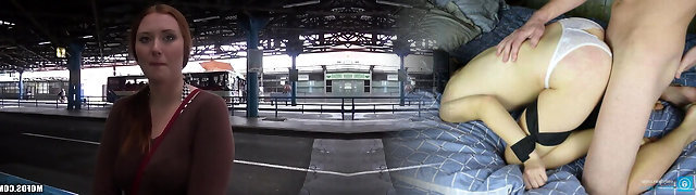 Uber-cute Russian girl gets fucked from behind on train by phat hunk