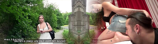 Public bae fucked by big white dick outdoor in snatch