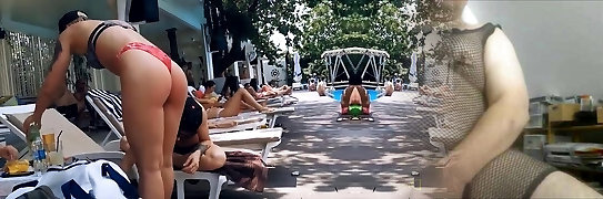 Hot Babe in a Thong and Topless in Public