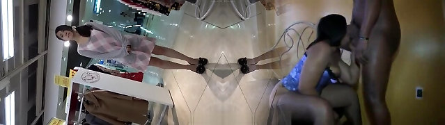 Pretty Asian office damsels get in some public hump at work
