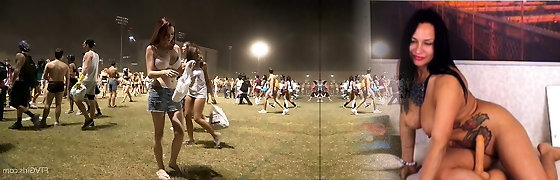 Two hot honies get on stage to finger
