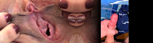 Cum up together. So close you can odor it. Amateur Wife's Fur Covered Swollen Pussy Drill. Cuming inside. Dripping Creampie