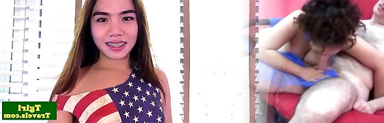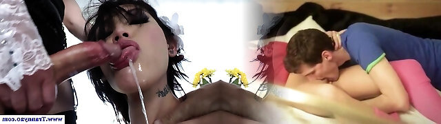 Adorable Asian tranny sucks dick, drains hers and gives head in