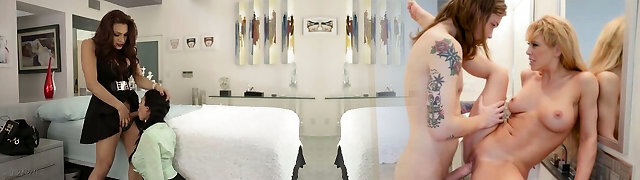Small tittied tranny Lena Kelly fucks cooter of corded up girlfriend