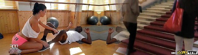Black intimate trainer fucks juicy cunt of client Sheena Ryder