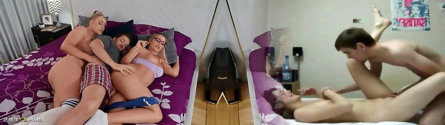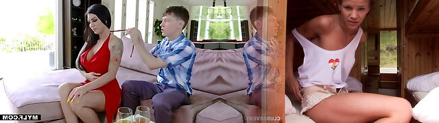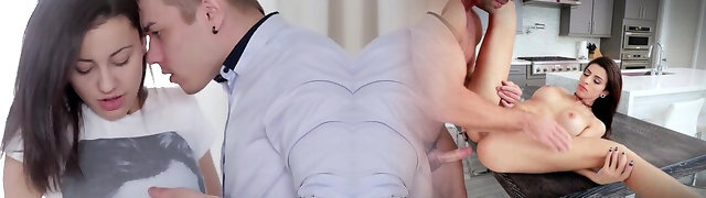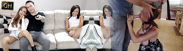Perverted guy fucks busty stepsisters Chantal Danielle and Jasmine Wilde while witnessing a movie