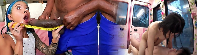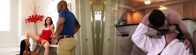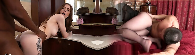 Hot redhead slut hungry for BBC fucky-fucky likes slurping her friend's huge monstercock and then asks him to wreck her pussy