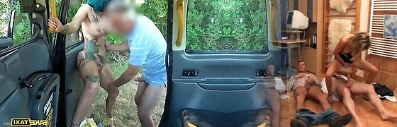 Kinky girl adores strenuous orgasm and a driver's juice on her face