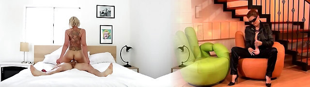 Tattooed wife Lily Lane likes pegging her dirty husband on the bed