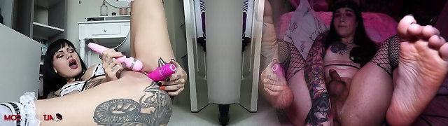 Sexy Buxomy Dark Haired Maid Pleases Her Bald Pussy With Sex-toys While Her Boss Is Not Home
