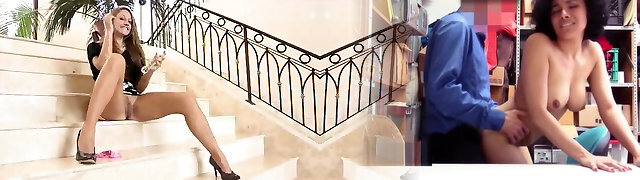 Teen Honey Masturbating On a Stairway