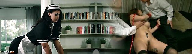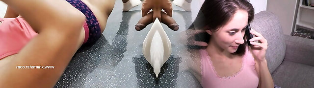 Asian cleaning lady Kiana polishes a large man rod with her mouth and pussy