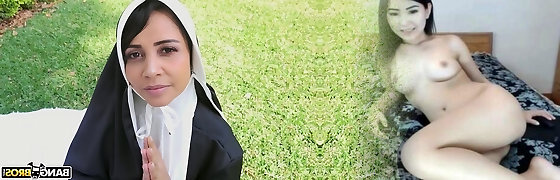 Dressed like nun nymphomaniac is ready for some steamy cunnilingus