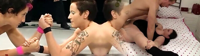 Lesbo grappling, loser fked 5