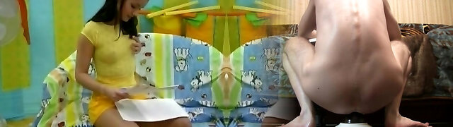 Muddy daddy is spying on magnificent young babysitter jilling off pussy in the living room