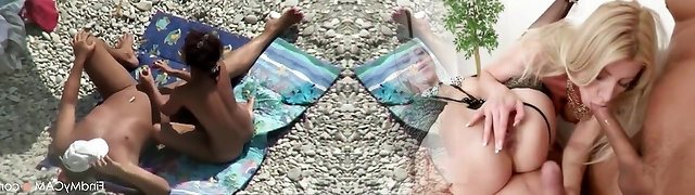 Voyeur tapes nudists fucking eachother's gf on a nudist beach
