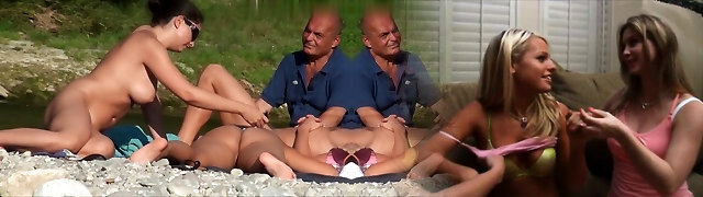 cute girl gang blowjob at cap d agde
